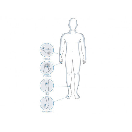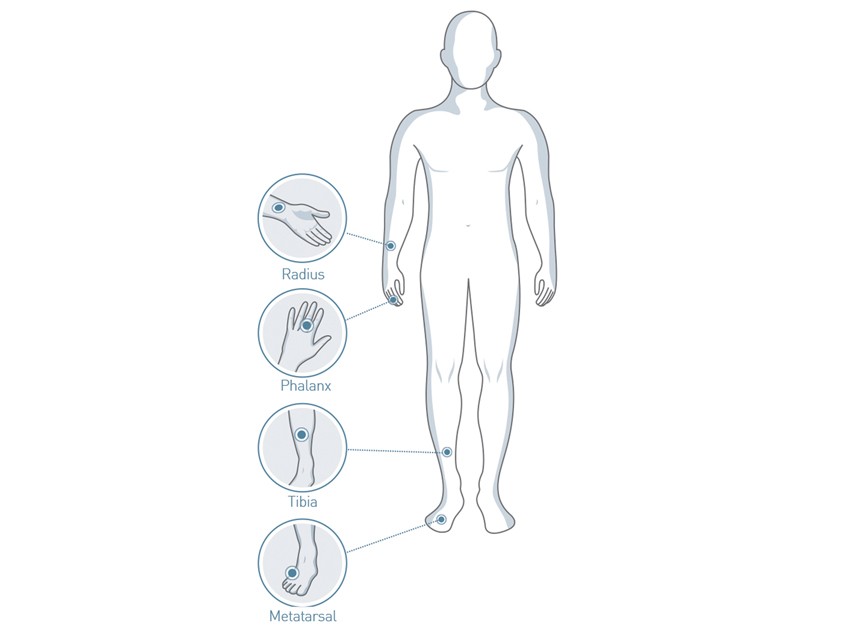 Consente di effettuare la misurazione da varie sedi scheletriche: radio, falange, tibia e metatarso. La flessibilità del test multi-site migliora l’identificazione dei punti di osteoporosi, così come è in grado di testare i pazienti sui quali risulta difficile la valutazione di determinate sedi scheletriche.