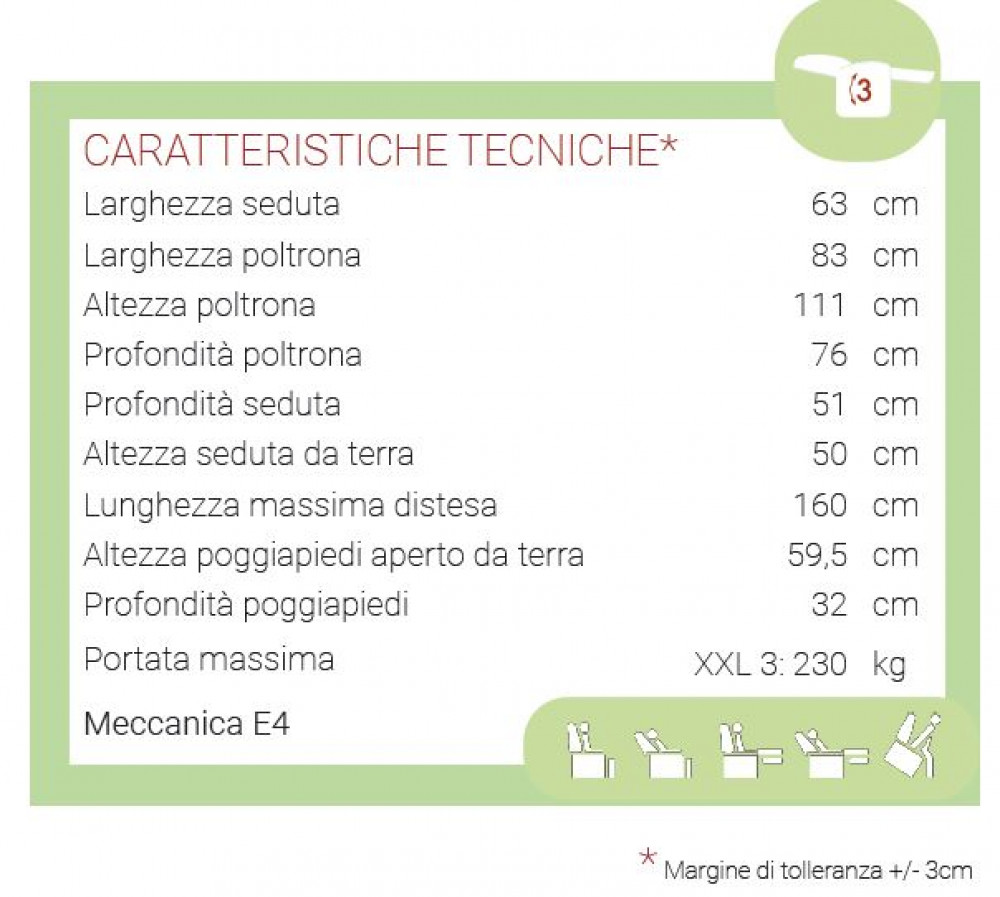 Nadia XXL è una poltrona bariatrica, adatta a sopportare un carico fino a 230 kg. Oltre alla struttura rinforzata, la solidità della Nadia XXL è garantita dalla presenza di ben 3 motori, per poter gestire tutti i movimenti di una normale poltrona in totale sicurezza. Come per tutte le altre poltrone Italia è possibile richiedere, come accessorio, un Gran Foulard in un tessuto a scelta, per proteggere i rivestimenti. L’unicità della poltrona fa sì che non sia proposta in versione standard, ma è offerta a ciascun cliente la possibilità di personalizzare la poltrona come desidera. Le opzioni che la produzione italiana è in grado di offrire sono molteplici:
