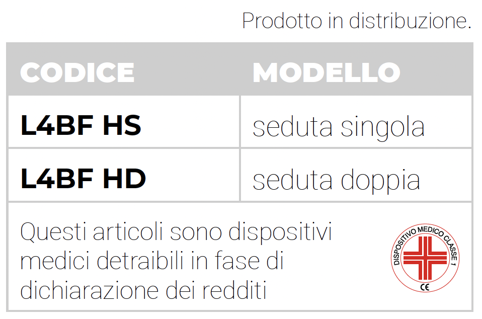 - Braccioli ribaltabili e regolabili in altezza in larghezza