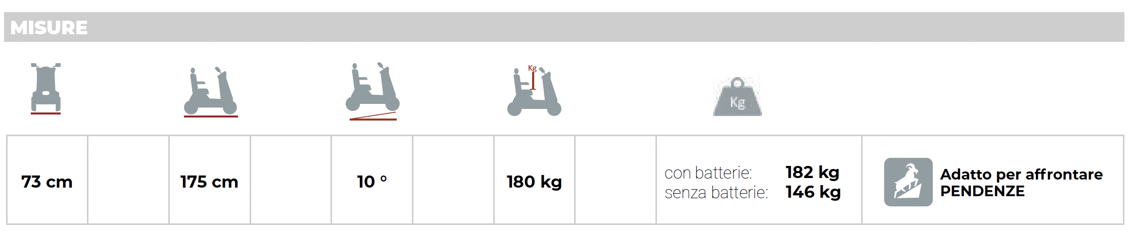 Leggi i requisiti per l'IVA agevolata.Scooter dalle dimensioni notevoli e dall’evidente robustezza ma estremamente confortevole, agile e scattante. Portata massima 180 kg.