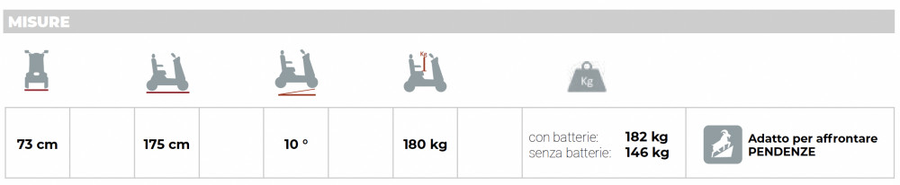 - Autonomia: 40 Km (con batterie da 75Ah) / 52 Km (con batterie da 100Ah)