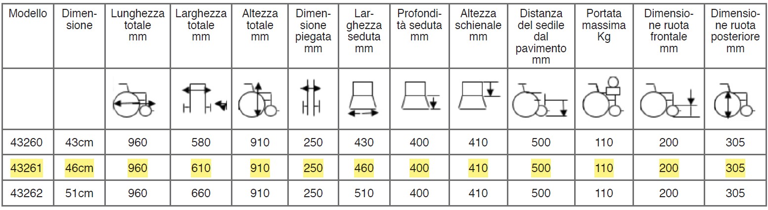 - Ingombro in larghezza a carrozzina ripiegata: 25 cm
