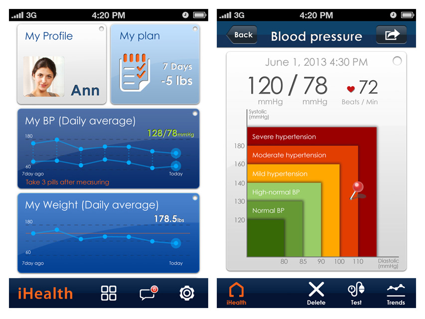 - misurazione della pressione sanguigna (sistolica, diastolica) e della frequenza cardiaca (battiti al minuto)