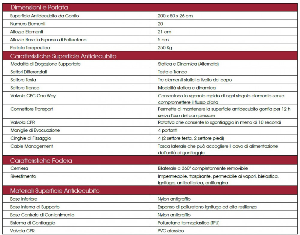 - Connettore TRANSPORT, permette di mantenere il materasso gonfio per 12 h senza l’uso del compressore.