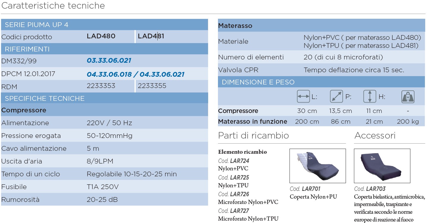 LAD481 - Kit antidecubito a ciclo alternato Piuma UP4 – Materasso Nylon+TPU – H 20,3 cm a 20 elementi intercambiabili e compressore con regolazione