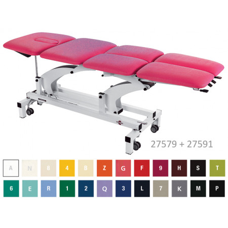 Lettini per visite e terapia a due motori, con regolazione elettrica dell’altezza mediante rail o pedale a bassa tensione (24 V). Hanno sei o otto sezioni: la sezione del tronco può essere regolata elettricamente senza sforzo dall’operatore, usando la tastiera dietro la testa del lettino, mentre il paziente è sottoposto alla terapia; le altre sezioni possono essere regolate con uno o più sistemi di molle a gas. La sezione della testa è dotata di un foro ovale per la respirazione, per un maggiore confort. Lettini ideali per terapie con tecniche di rilascio miofasciale e analisi posturale. Ampia gamma di posizioni possibili in flessione/estensione, simmetriche o asimmetriche. Alimentazione 230 V - 50/60 Hz. Forniti con copertura per foro naso-bocca e manuale di esercizi di educazione posturale.
