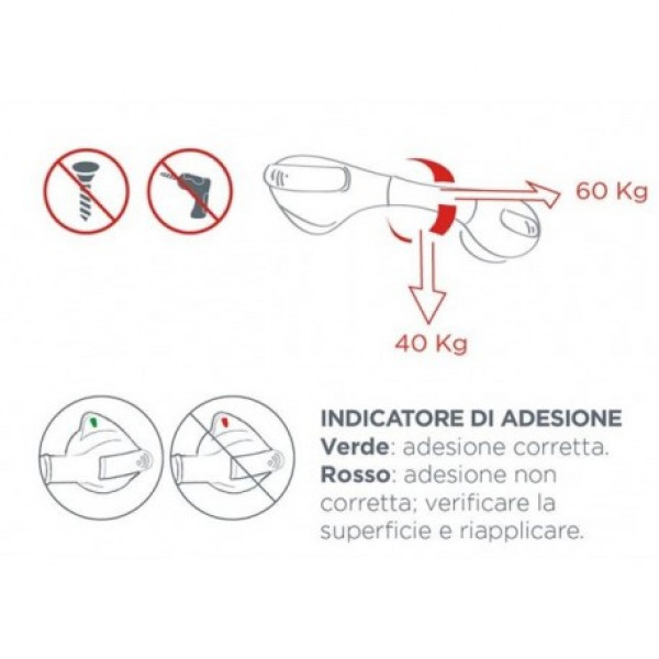 Le maniglie da bagno a ventosa, realizzate in ABS, estremamente facili e veloci da montare e smontare grazie alle ventose, permettono un utilizzo sia verticale che orizzontale che ad angolo, diversamente dai modelli classici che prevedono un fissaggio fisso.