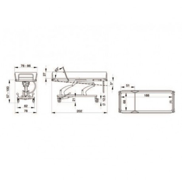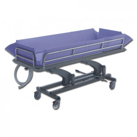 La barella è idonea per trasferimenti ed uso doccia, versione elettrica regolabile in altezza mediante batteria ricaricabile 24 V e comando a pulsantiera.