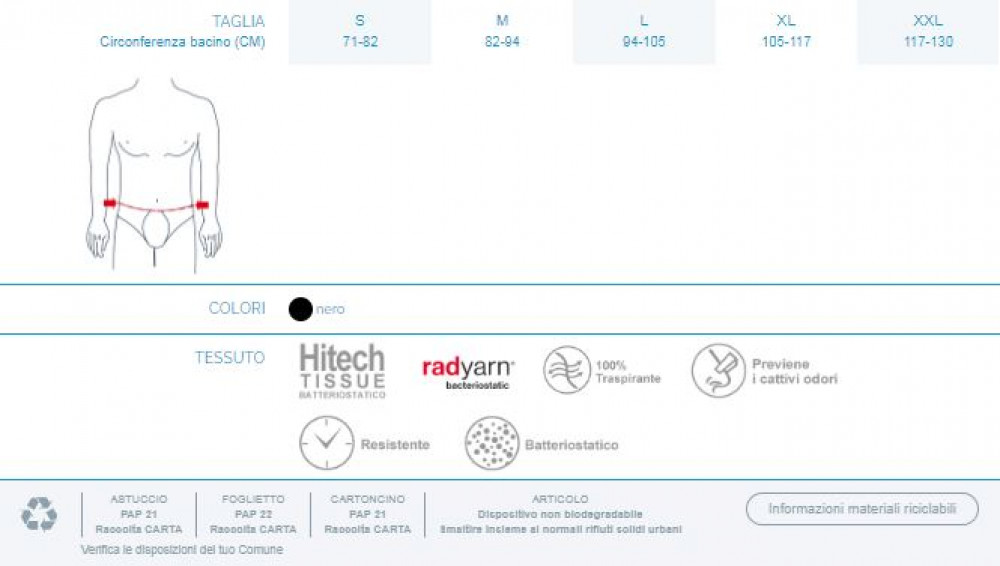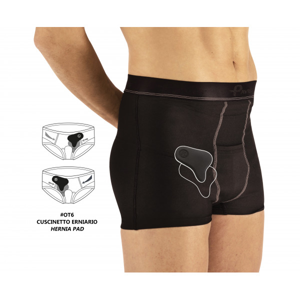 Il nuovo Erniaboxer rappresenta il restyling dello slip erniablock nel modello boxer, più giovanile e più moderno. Comoda apertura al sospensorio. Particolare attenzione è stata posta nel sostegno e nella protezione delle parti più delicate. Predisposto per l’uso di cuscinetti opzionali è indicato per la contenzione di ernie inguinali riducibili. Indicato anche dopo l’intervento chirurgico, garantisce un efficace sostegno addominale e previene la formazione di recidive. Anallergico per l’utilizzo a contatto della pelle. Massimo comfort. Tessuto Radyarn.
