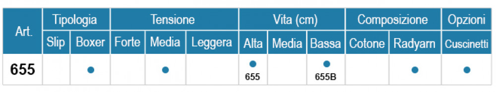 Disponibile nella versione alta (655) e bassa (655 B) sull’addome.