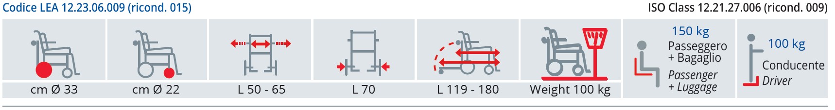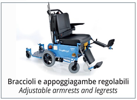 - Appoggiagambe girevoli e regolabili.