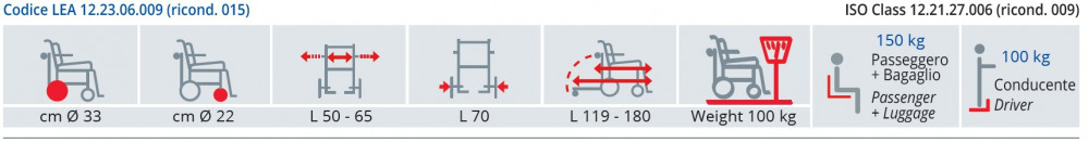 - Braccioli ribaltabili e regolabili in larghezza.