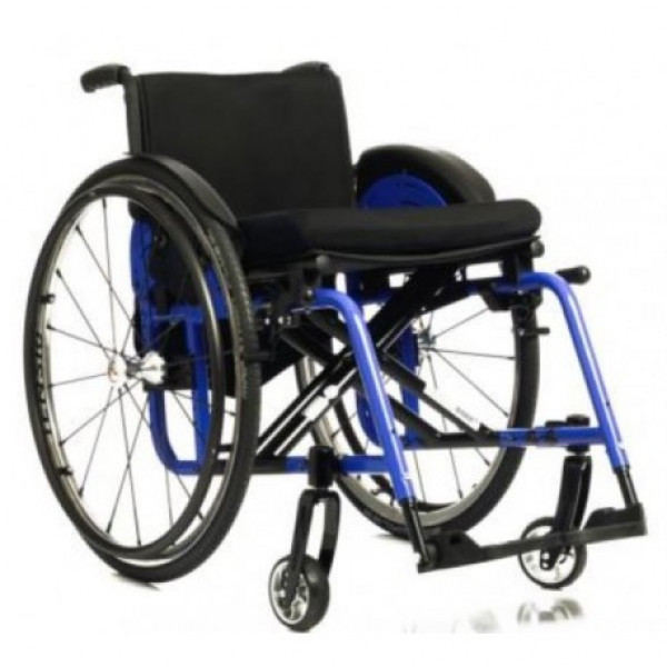 Carrozzina pieghevole attiva superleggera, con telaio in alluminio e doppia crociera, per chi vuole raggiungere il massimo grado di autonomia ed indipendenza senza rinunciare alla comodità.