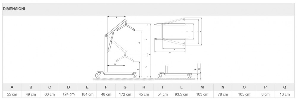 RI812 - Sollevamalati elettrico in acciaio verniciato Muevo – Modello ingombro contenuto – Apertura gambe a leva – Portata max 150 kg